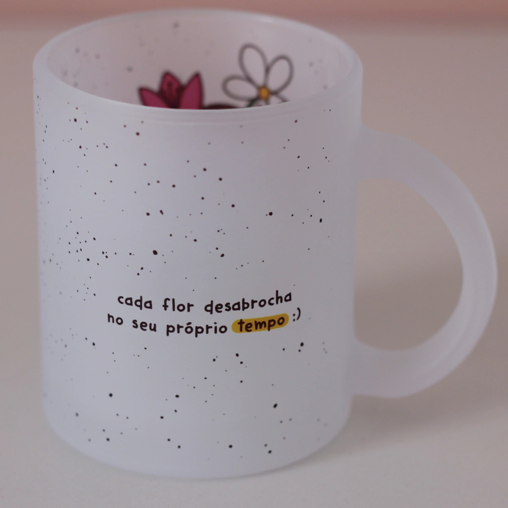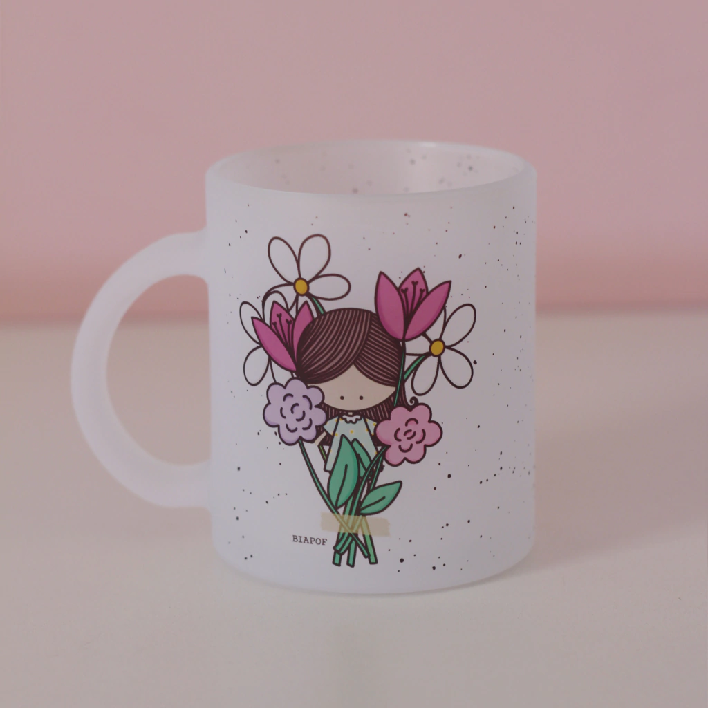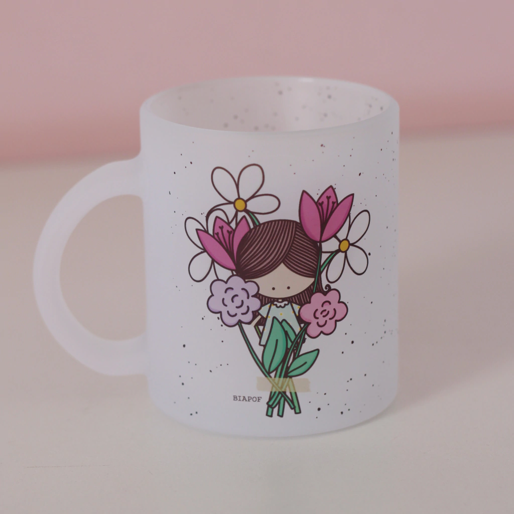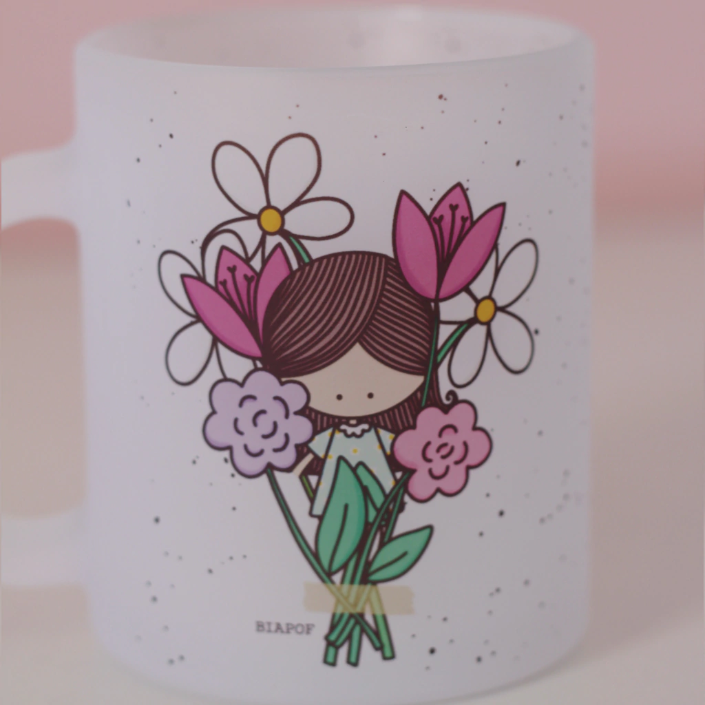 Caneca especial de vidro jateado "Buquê de Flores".